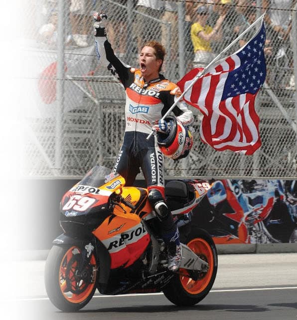 If you ever doubt how far hard work and strong values can take a person, just take a look at the career and life of Nicky Hayden. Though it’s a given that he was blessed with plenty of raw talent, what really set this American motorcycle road racer apart from his rivals is his work ethic. There are few people who wanted success in their sport as badly as Nicky did, and that desire came through in spades not only when he was in front of adoring crowds on a race weekend, but especially during the sport’s less glamorous moments: Training in the gym during the off-season, putting in endless laps during winter testing, and studying data on the computer with technicians late at night in the garage.