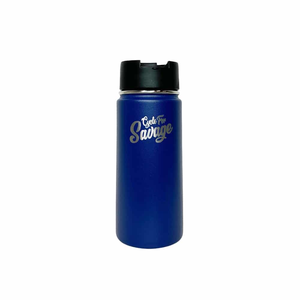 New limited release Cycle For Savage Hydro Flask with logo in blue.