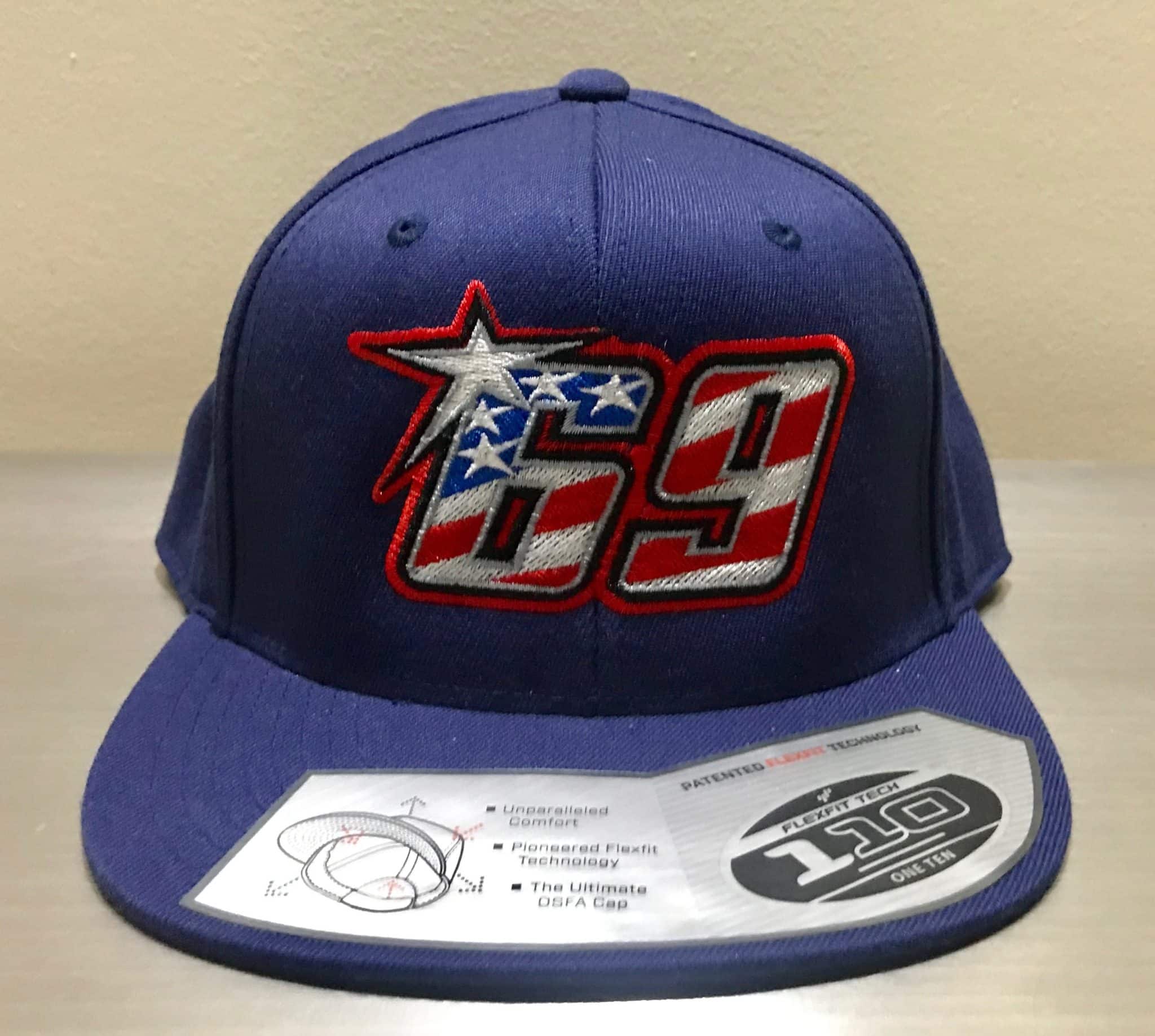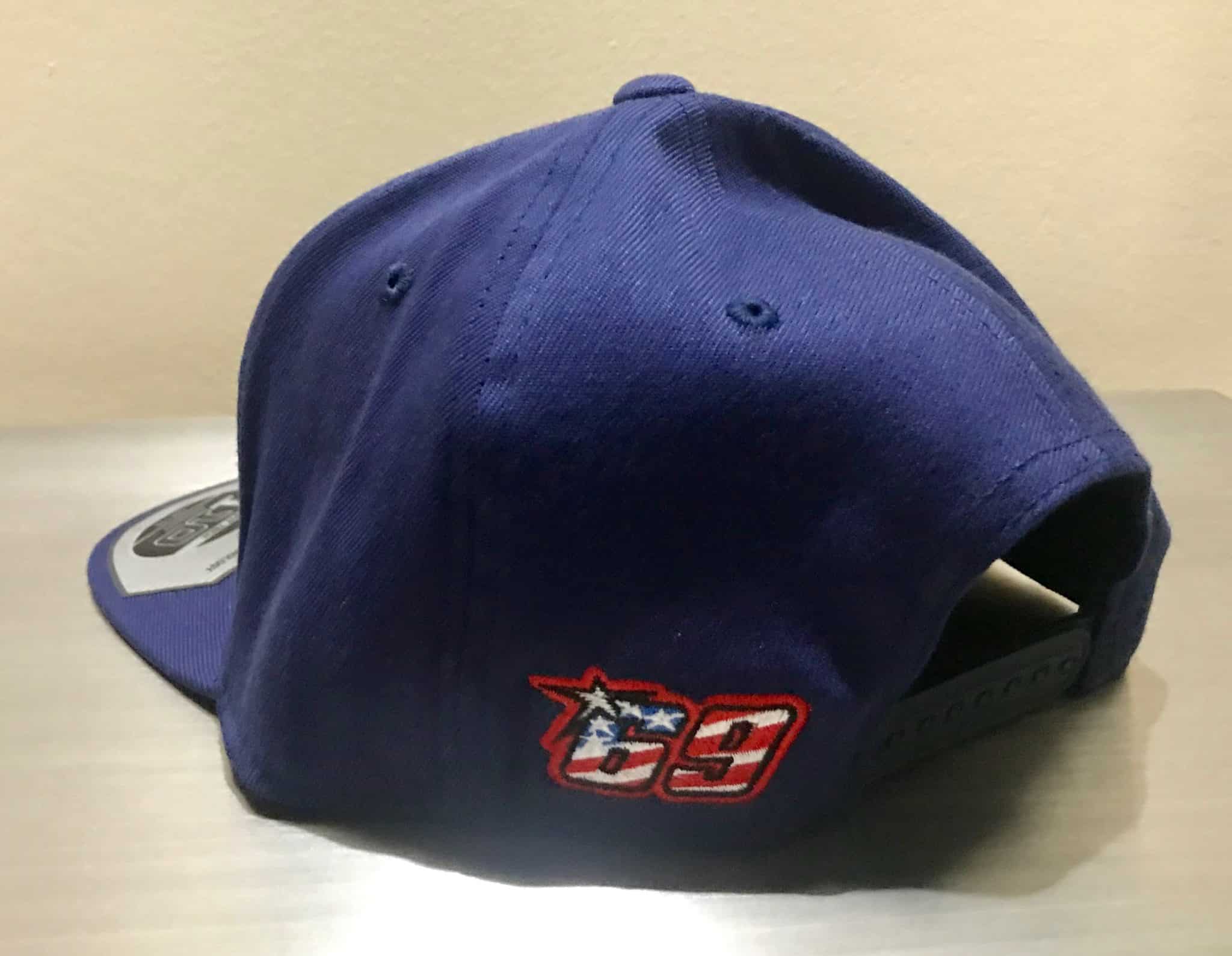 These are the original navy official Nicky Hayden “69” commemorative Snapback Hats.