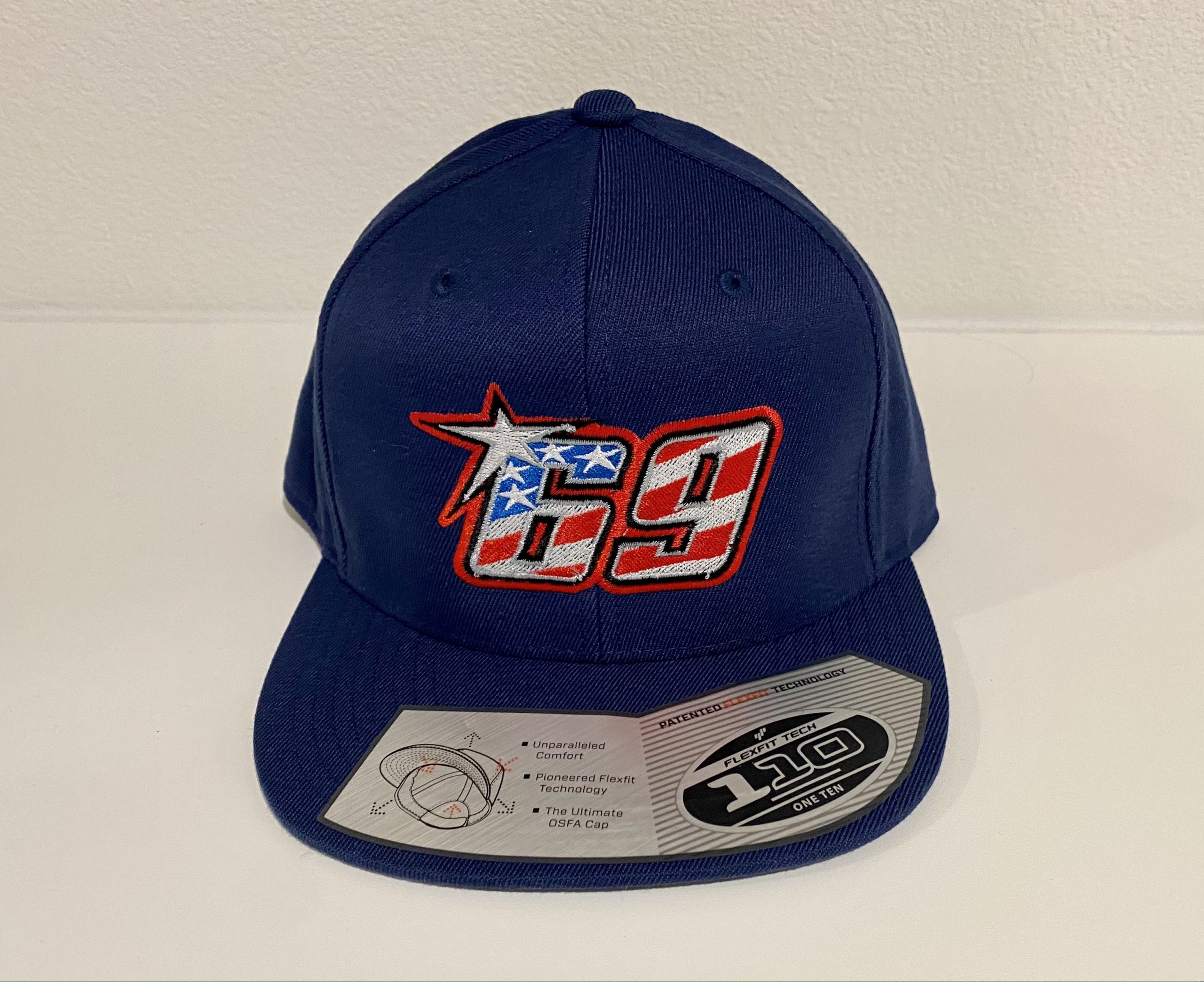 Hat Details: FLEXFIT 110 MULTI-CAM NAVY SNAPBACK HATS. The iconic Nicky Hayden “69” logo on the front.