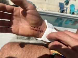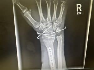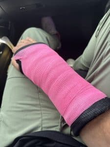 On Friday, March 29, I went to Dr. Guerrero in Southern California to get a check-up on my wrist. After seeing the x-rays, it makes sense why I am in so much pain. I did a number on it. The doctor said that the surgeon in Florida did a really good job, which was so great to hear! Everything looks really good. They ended up cutting out the stitches I had on the top and bottom of my hand. The pins in my wrist will stay in for a total of eight weeks. He decided to throw me in a hard cast and to come back to get that taken off and pull the pins out. After the pins come out, I can start therapy.