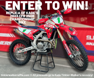 Road 2 Recovery is excited to announce an incredible opportunity to support Kade Tinker-Walker's recovery, while also standing a chance to win big! From now till June 1st, you can enter to win and potentially win an impressive 2023 CRF 250r, designed to replicate Kade's 2023 NGPC Pro II Championship-winning bike.