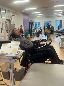 Nic is continuing physical and occupational therapy at Sheltering Arms Institute twice weekly for the rest of the year. Next year, Nic will have limited therapy sessions per insurance coverage. We will add an out-of-pocket therapy with a local exercise recovery program in conjunction with therapy. Nic continues to work on upright tolerance with therapy, hoping to be ready for his standing power chair upon approval. We continue to use stimulation to lighten up some upper body muscles and do a full range of motion.