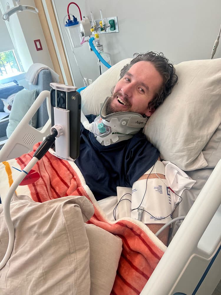 Recently Nic has experienced two steps forward and one step back. He has been working well with physical and occupational therapy even while being intubated. On our good days, he can sit on the side of the bed, and on our low days, we focus on an in-bed range of motion. Nic never sat still before his injury, and it’s our goal not to let this injury stop us.