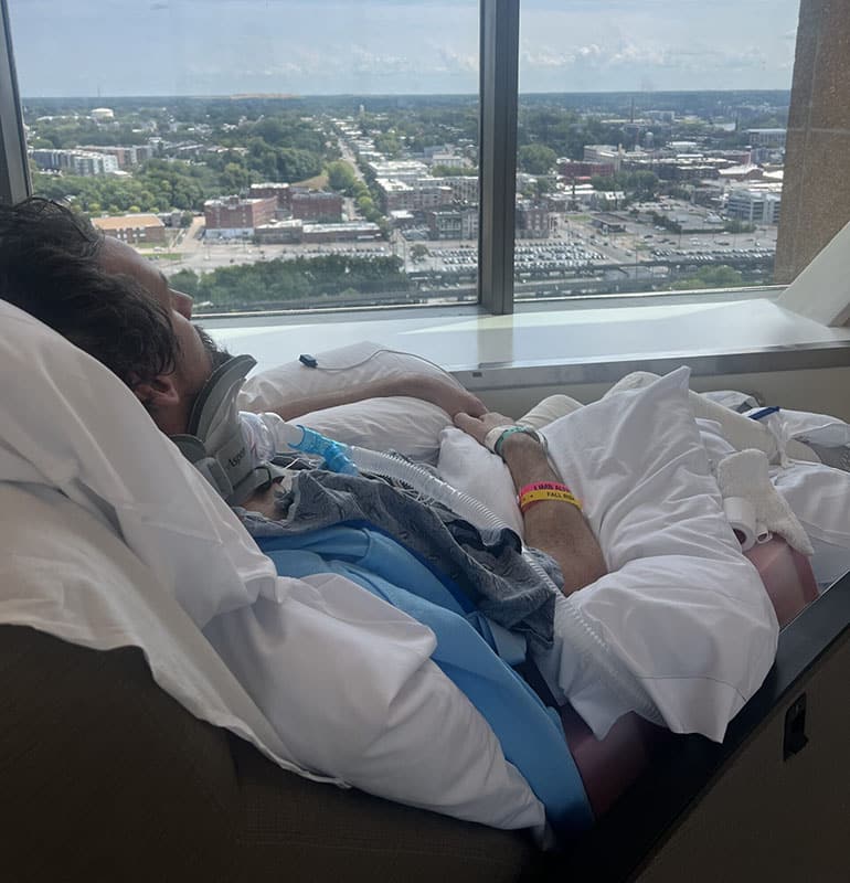 This past week has been an emotional and mental roller coaster—the physical tool of the recovery process on Nic’s body after his extensive surgeries, unfortunately, has caught up to him. After running some tests and labs, reports indicated that Nic’s lungs needed additional help functioning independently, which led to the decision to intubate him. Before and after intubation, Nic’s comfort has always been a priority to promote rest and healing. Physical and occupational therapists have supported him through this process, keeping him moving and even sitting in an upright chair position. Everyone, from the physicians to the housekeeping staff, has been extremely supportive and encouraging.